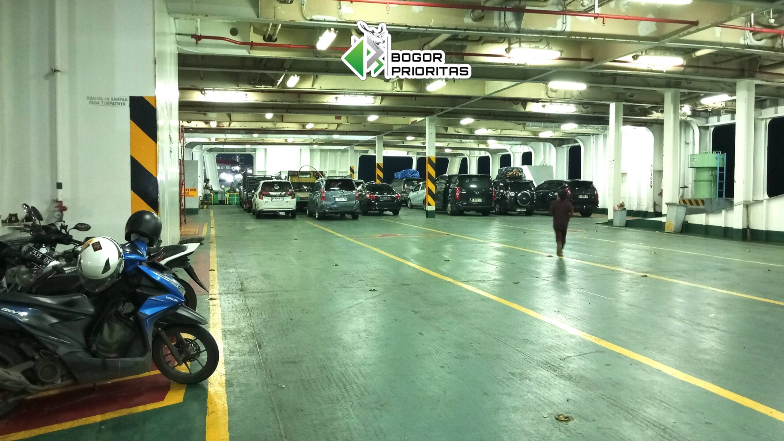 Kondisi area parkir kendaraan di lambung kapal feri yang lengang. (Foto: Donni | bogorprioritas.com)