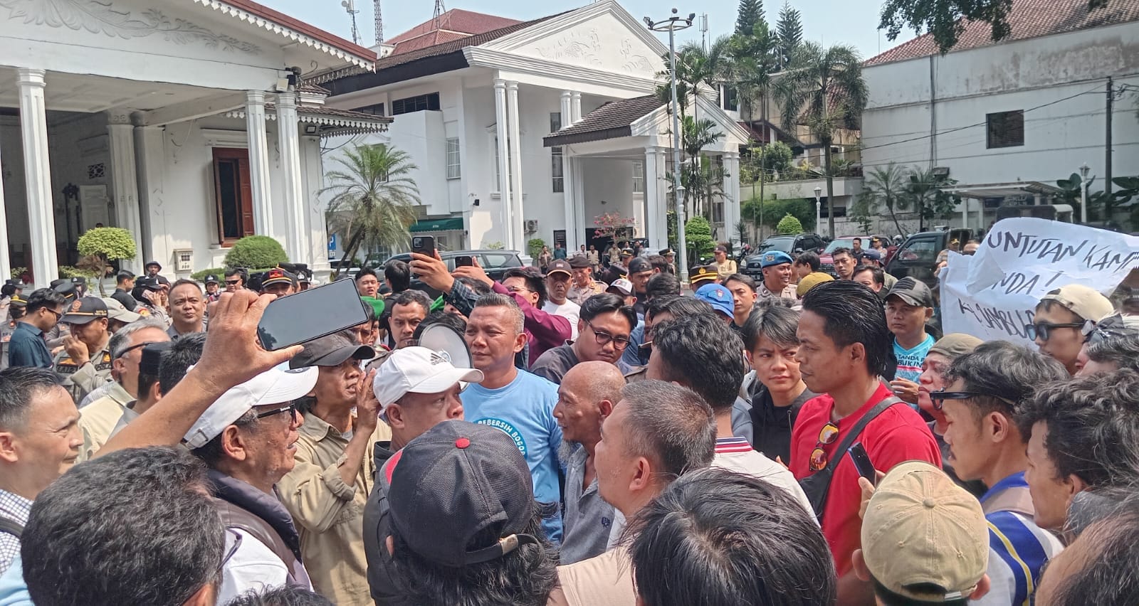 “Sudah diagendakan jam 9 pagi, kami menerima audiensi perwakilan mereka cukup 15-20 orang. Tapi faktanya yang datang 400 orang. Saya kaget tadi, lagi di dalam menunggu kehadiran perwakilan mereka. Namun yang datang lebih dari itu,” ucap Jenal.