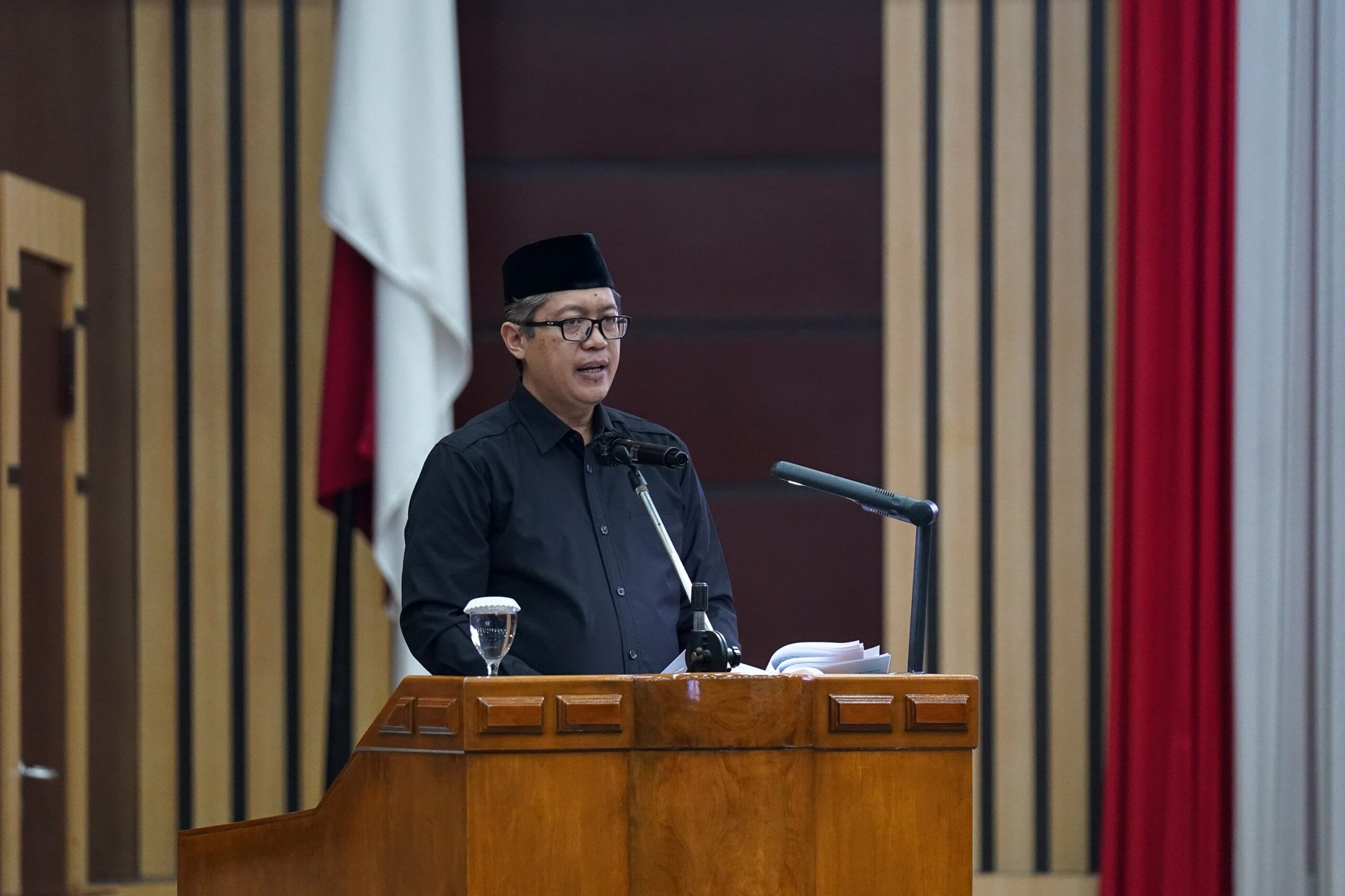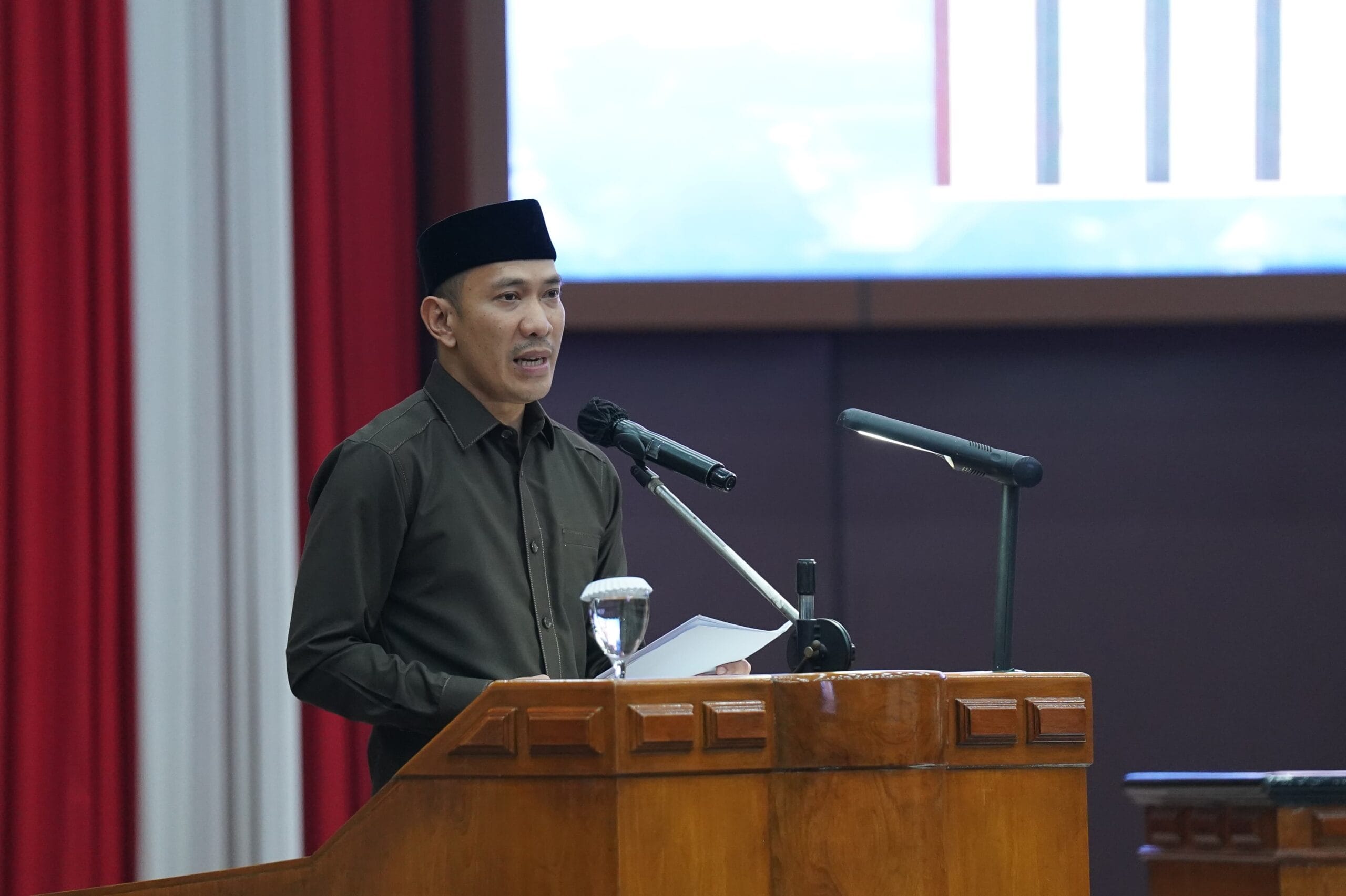 Rapat paripurna dipimpin oleh Wakil Ketua I DPRD Kota Bogor Jenal Mutaqin, menggantikan Ketua DPRD Kota Bogor Atang Trisnanto yang tengah melaksanakan ibadah umrah.